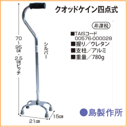 【非課税】クオッドケイン4点式杖島製作所 4点杖 多点杖 ステッキ リハビリ 片麻痺 マヒ【メーカー直送品】【代金引換不可】