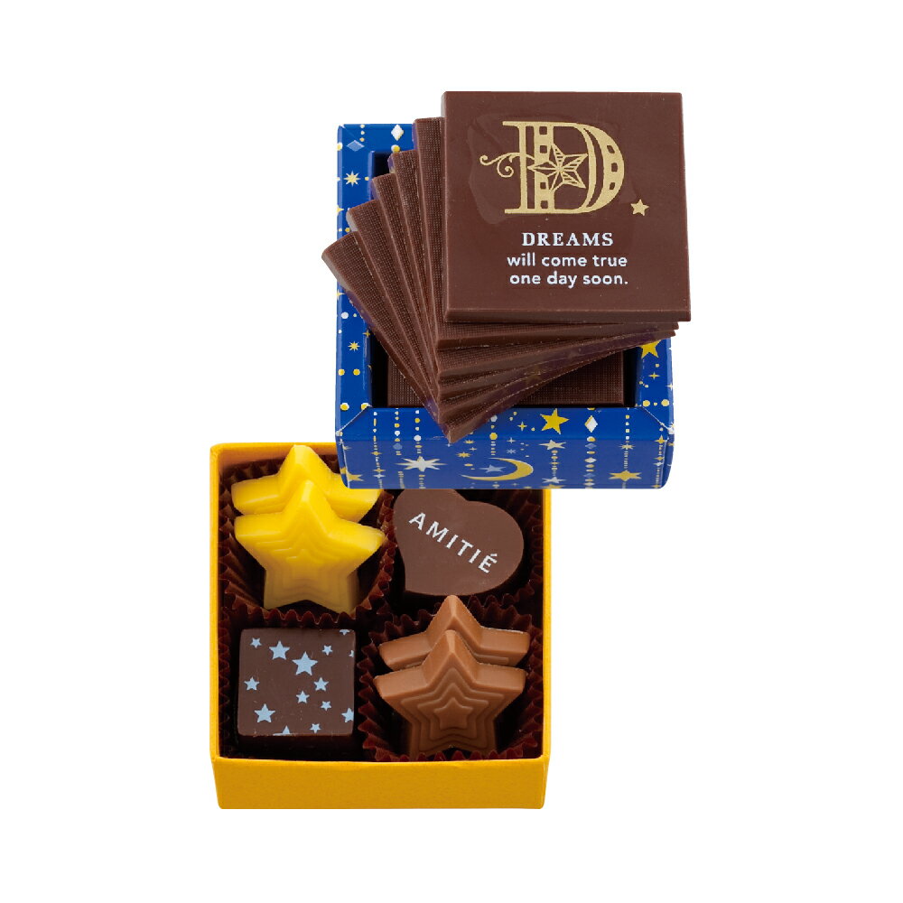 パッションフルーツテイストの星型チョコレートがかわいい、夢を贈るひと箱です。